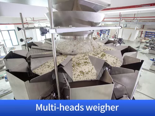 2.It adopts automatic bottle feeding, multi heads weigher filling machine, can sealing machine, labeling machine and bottle collecting machine to form a fully automated production line;