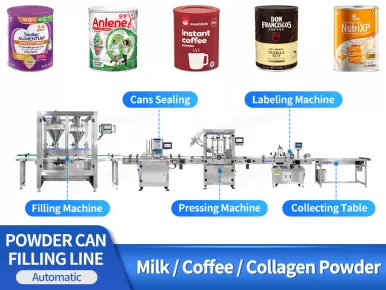 This powder filling line is used for the automatic filling of various powder products, such as milk powder, protein powder, nutritional powder, coffee powder, medicine powder, chemical powder, meal replacement powder, etc.