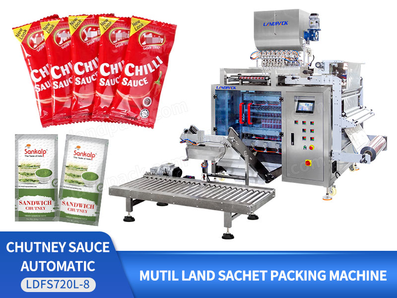 1.High-Efficiency 8-Lane Packaging System – Designed for the accurate and efficient packaging of chutney sauce into 4-side sealed pouches, utilizing a multi-lane setup for increased output.