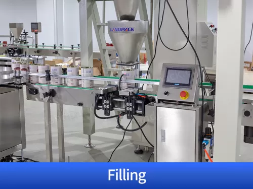 Granule can jar filling line machine , it is suitable for packaging various granular products, such as rice, nuts, corn flakes, dry fruit, peanuts, melon seeds, pepper, pepper, oatmeal, etc. Suitable for all kinds of containers on the market, such as plastic cans, cans, jar, etc.