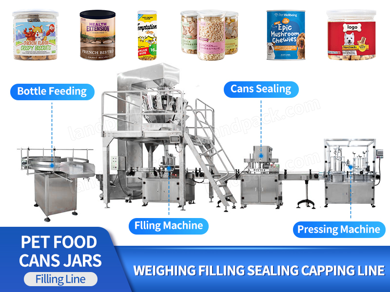 Applicable for filling of all kind of granular, block and other materials into the tin can box bottle and other container. such as pet food, melon seeds, almonds, pistachios, pine nuts, candy, jelly, bean food, frozen food, pet food, all kinds of snack food, hardware and daily chemical materials, etc.