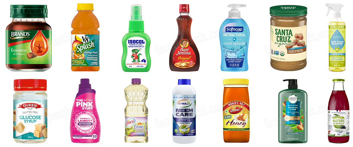 4. The packing line is mainly suitable for packing all kinds of liquid, fluid, and paste material, such as juice, edible oil, sauce, daily necessities, medicine, etc;