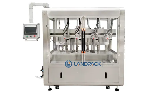 First of all, because the customer's output is 3000-4000 barrels per hour, and the customer's material fluidity is relatively good, we chose a 4-head tracking filling machine for the customer with a speed of 40-70 bottles per minute, which can fully satisfy the customer. needs.