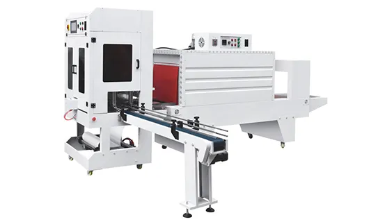 After capping, the customer wanted 2-4 bottles for heat shrink finishing, so we chose a Automatic PE film sleeve shrink wrapping machine connected to the front end for the customer.