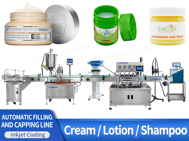 The cosmetic cream lotion filling machine—consisting of a bottle unscrambler, single-head gear pump filler, vibrating cap feeder, high-speed capping machine, and inkjet coder—is engineered for smooth, accurate, and hygienic filling of viscous products: