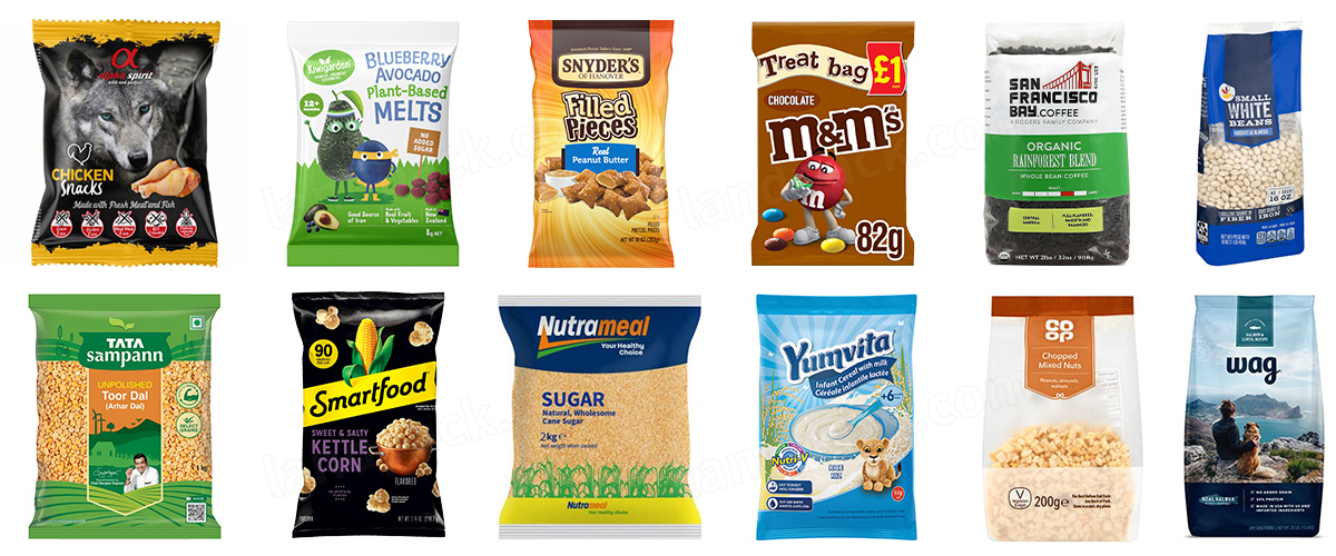 Additionally, it handles granular foodstuffs like nuts, seeds, coffee, dried fruits, rice, and snacks, as well as non‑food granules such as small hardware parts, fertilizers, salts, and chemical powders, making it ideal for snack producers, agricultural input packagers, and industrial component distributors.