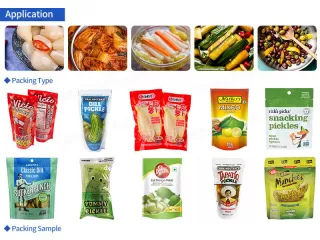 Suitable for packing pickles products into stand-up pouch doypack pouches premade pouches such as pickles, pickled cucumber, carrot, kimchi, kelp, chili, etc.