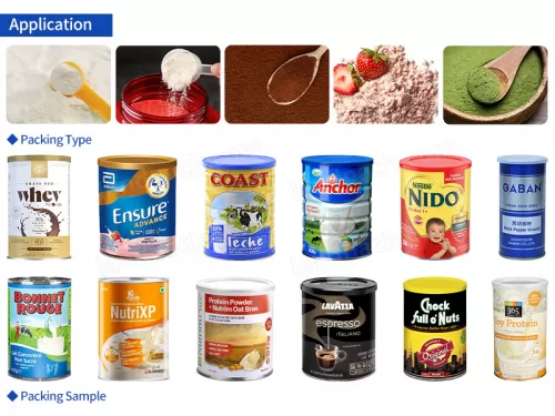It can be quantitatively weighed and filled for whey protein powder, coconut powder, soup powder, milk powder, ground coffee powder, cocoa powder, chili powder, spice powder, etc.