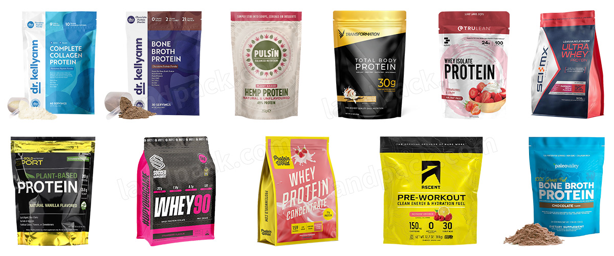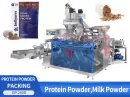 Horizontal automatic premade zipper bag gusset pouch doypack powder packing machine, it is suitable for powder: protein powder, milk powder, cocoa powder, talcum powder, flour, tea powder, bakery powder, spices, coffee powder, medical powder, etc.