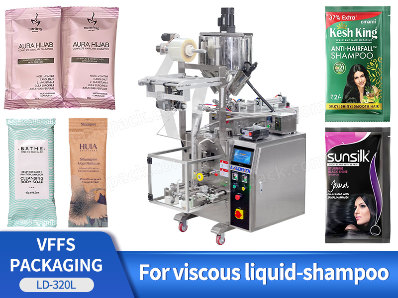 This machine is designed for side-sealing various liquid products, including shampoos, conditioners, body washes, lotions, and other hair care and personal care items. It can also handle a wide range of liquid goods such as soy sauce, ketchup, chocolate sauce, laundry detergent, honey, fruit juices, oils, and vitamin-infused beverages.
