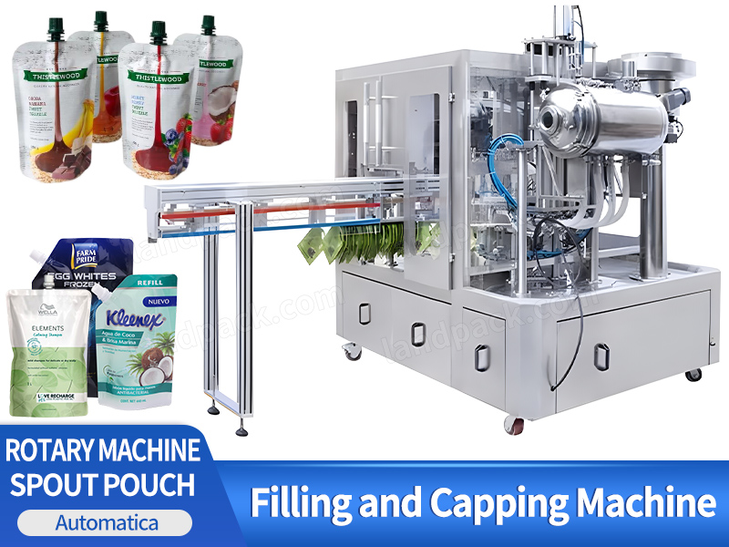 1. Landpack standup pouch filling capping machine, are automatic high-speed filling production line, from the bag, filling, cover, gland are fully automatic operation.